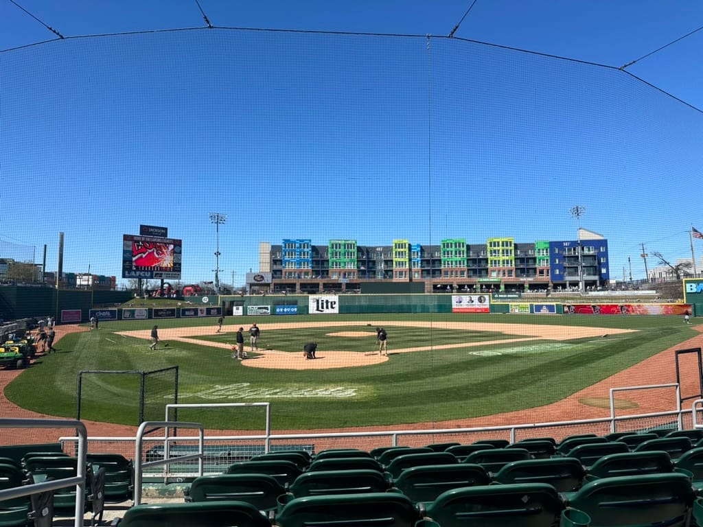 As I stated in the opening, I was really disappointed by the lack of vibrance the city had. I love a good downtown, skyscrapers in the background type of ballpark. However, it is not the worst I've seen. The ballpark was nice on the inside and the outfield view featured an apartment building that was connected to the ballpark. Tenants could watch games from their deck and the ground floor of the building looked like a restaurant or lounge of some sort.