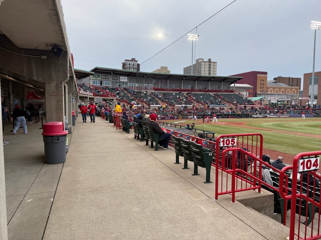 I did enjoy the scenery at UPMC Park, however, it wasn't anything to write home about. The city of Erie isn't sprawling with sky scrapers, but sitting on the first base line will give you a glimpse of the Erie skyline. With that being said, if you do sit on the first base line for a evening game, the sun sets over the left field corner meaning you might get a pretty bad glare on a clear night.